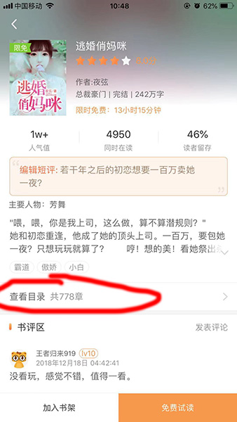 1、任意选择一款小说,在小说的简介下方就可以直接查看目录了。
