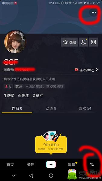 1、满足这三个条件之后,打开抖音进入【我】然后选择右上角的【三个点】进入设置;