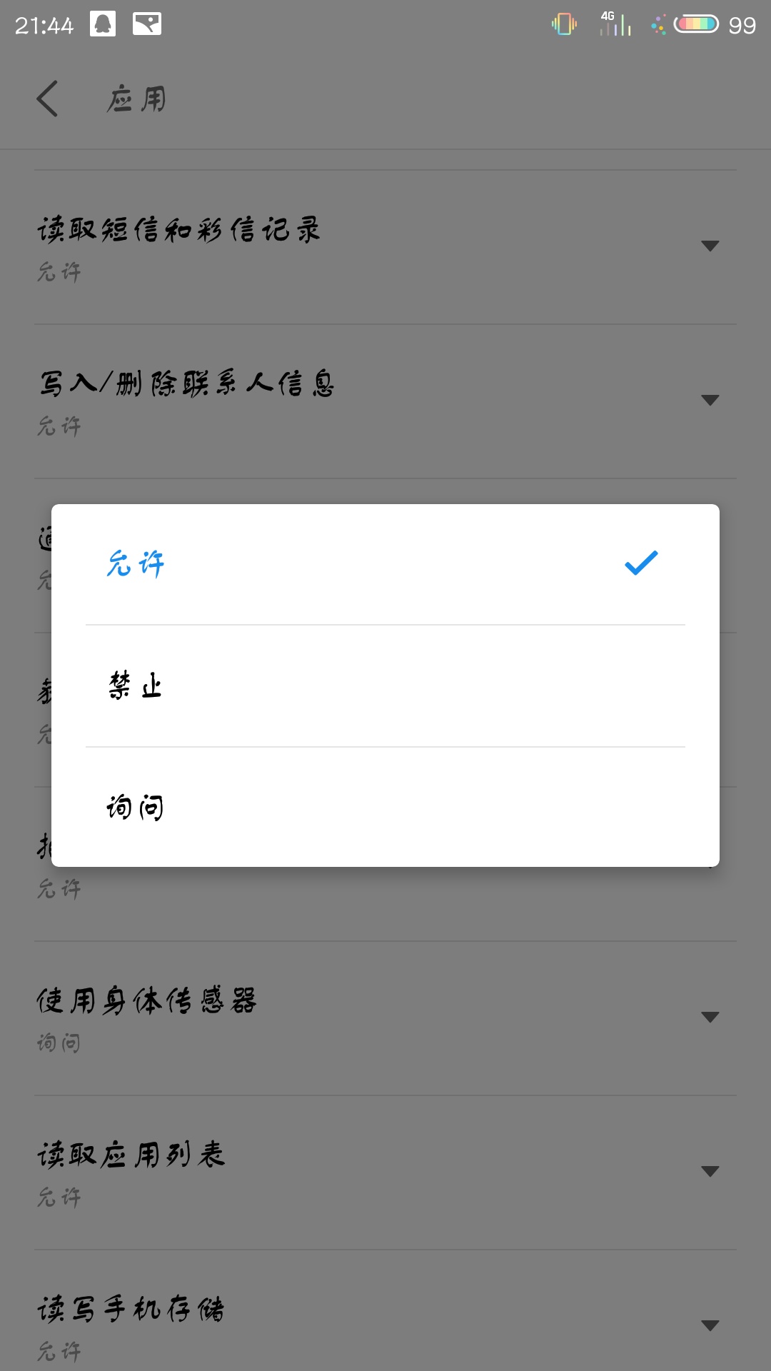 3、打开微信“应用权限”,找到“通话及本地录音”。