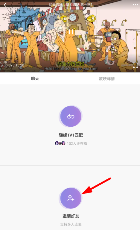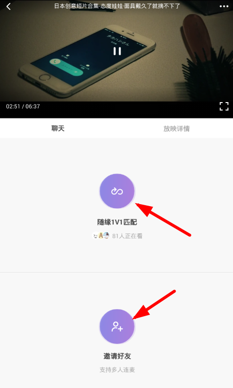 4、大家在观看放映视频的时候,还可以去邀请好友,或者随机匹配用户来一起观看视频了。