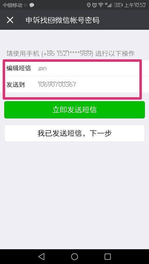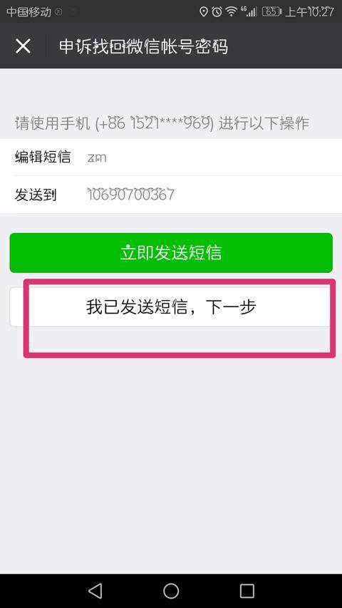 9、回到申诉界面,点击“我已发送短信,下一步”。