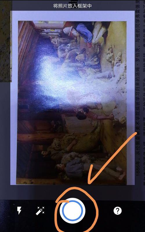 进入应用之后点按界面中的拍照标志,然后将手机镜头对准纸质照片或图片。