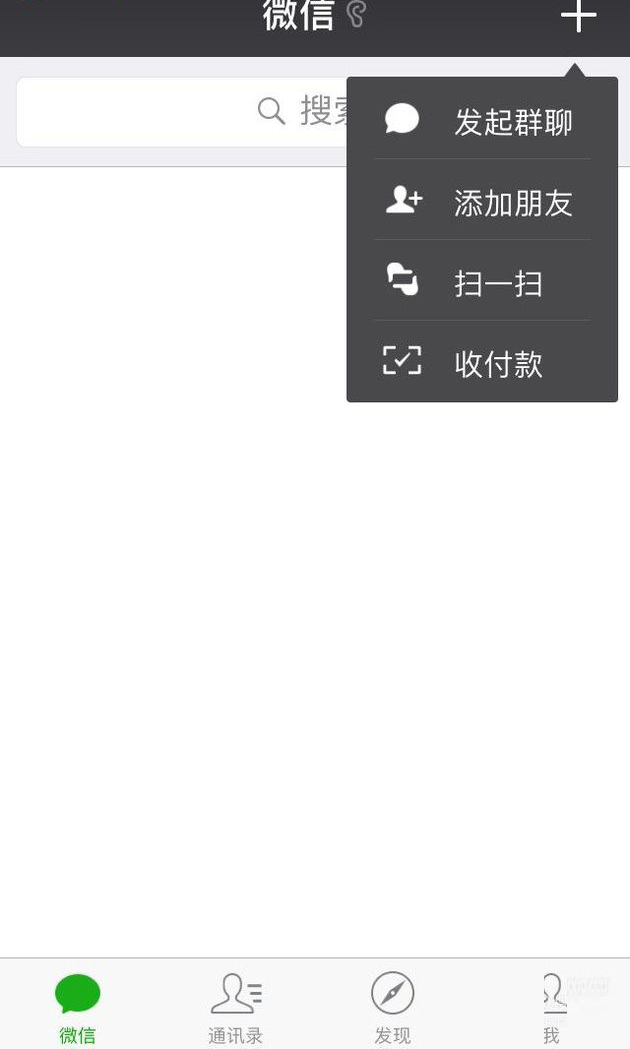 1、打开微信,然后再进入页面点击右上角的“加号”。