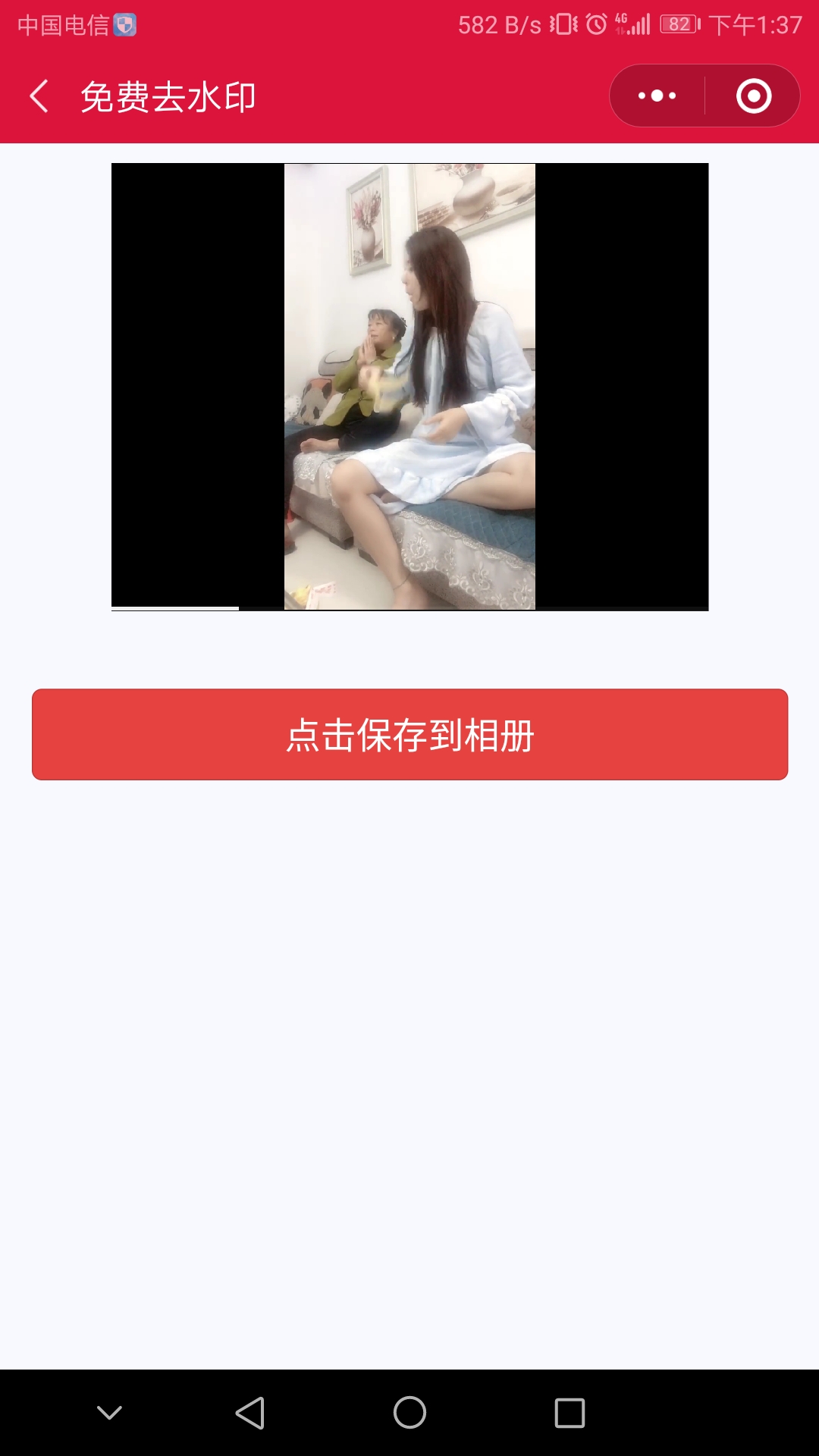 4、去水印成功后,它会出现一个新页面,然后我们点击【点击保存到相册】,这样你就可以在自己的【相册】里面找到了。