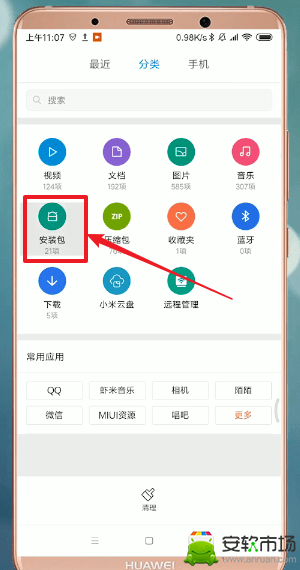 1、首先我们需要在手机上打开自己的文件管理,在文件管理里面找到分类,然后我们就可以选择其中的安装包选项了。