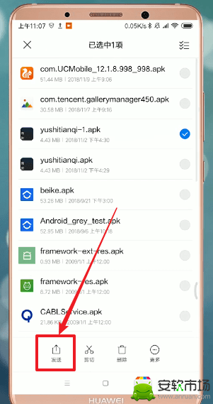 2、之后我们就可以选择自己想要传送的安装包了,点击发送就可以了。