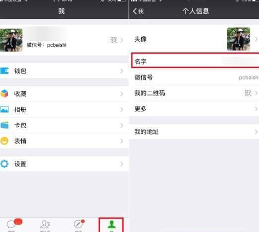 3、在手机中打开微信,然后切换到“我的”界面,点击自己头像进入个人设置,然后点击“名字”就可以修改昵称了!