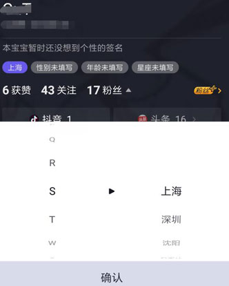 点击“个人资料-位置”然后选择一个其他的位置进行修改即可。比如现在是上海,就点一下上海就弹出了选择界面,然后就可以修改定位了。