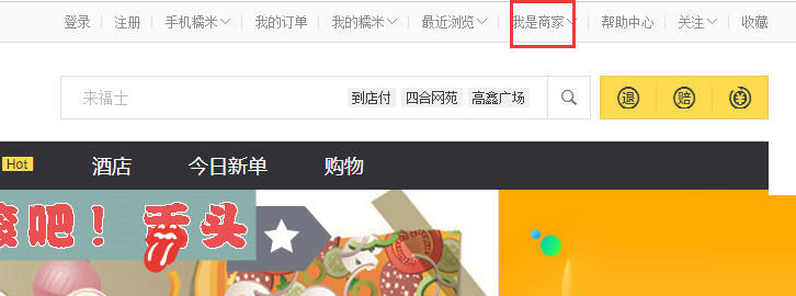 2.在第一栏的导航栏找到“我是商家”,如图2所示