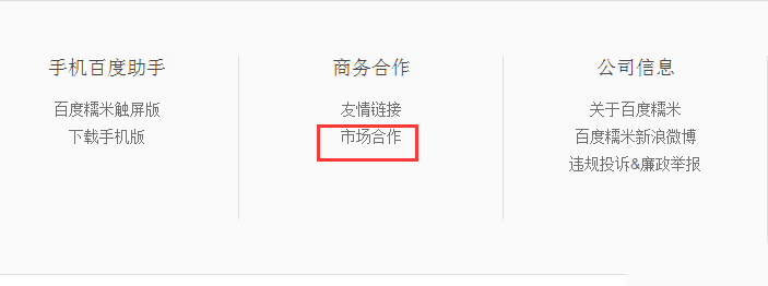 4.或者在官网首页最下方找到“商业合作”-“市场合作”。点击“市场合作”。如图4所示