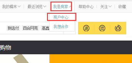 1.可以在百度糯米官网首页的“我是商家”下拉列表的“商户中心”登录,如图8所示