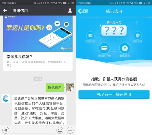 腾讯信用公测怎么没有了