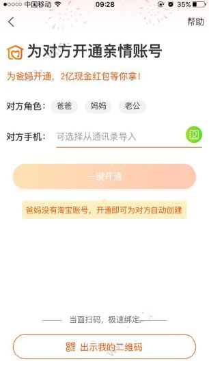 3、选择对方角色,输入手机号码即可一键开通哟,如果在爸妈身边的朋友,可以直接让对方扫一扫你的二维码也可以迅速开通,非常方便啦~
