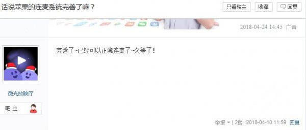 大家可以看到,微光app的官方回复,连麦苹果系统已经完善了,所以是可以连麦的哟!