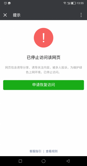 目前,网易区块链产品星球推广链接已被微信封禁,封禁理由为:页面包含诱导分享、诱导关注内容,被多人投诉。