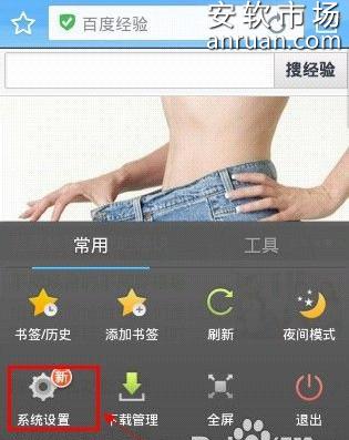 3手机按下手机menu键或手机浏览器界面的菜单按钮,在打开的菜单列表中选择“常用”下的“系统设置”。