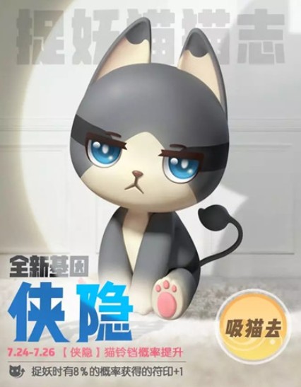 专属猫迎来新基因【侠隐】。7月24日-7月26日,【侠隐】猫铃铛概率提升。