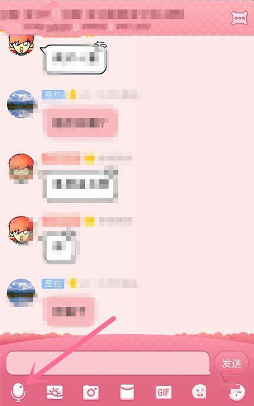 3、进入到群的聊天页面后,再接着点击下方的对话框里的【语音】图标;