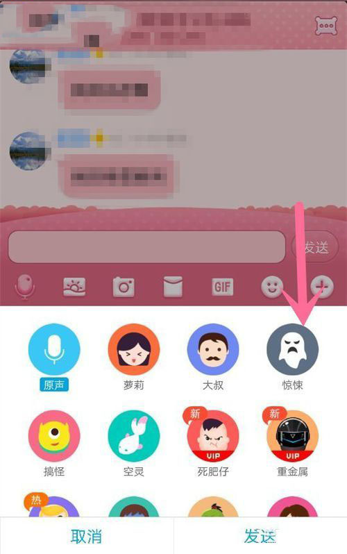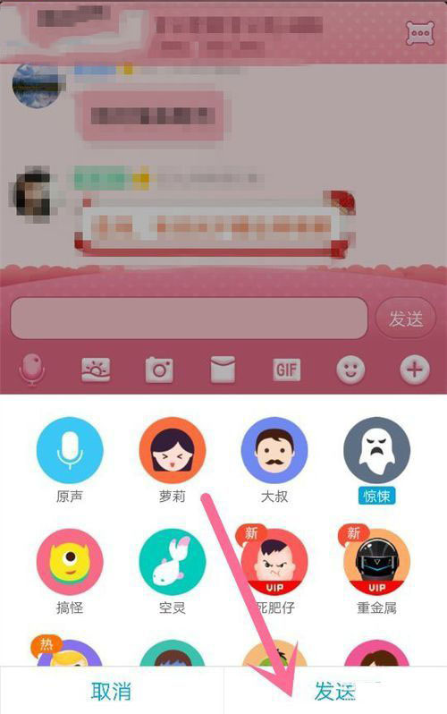 6、选择之后,再点击下方的【发送】按钮就行了,这样就可以在群里面看见自己发的变声语音消息了。