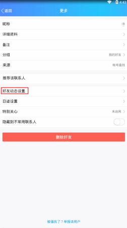 进入“更多”后选择“好友动态设置”,将“不看他的动态”开关打开(绿色)就可以了,打开之后就再也看不到他的空间动态了,想要再次查看只要将开关关闭就可以了;