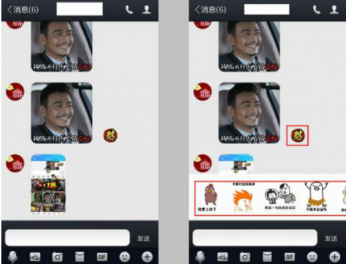 用户在选择内置GIF或表情入口菜单选项后,确认发送表情,间隔在20S内连续出现三张后,聊天窗口上的小图上,会出现一个“怼”字,这时候怼图游戏已经开始开始,双方就可以摩拳擦掌,在聊天框中进行疯狂表情狂刷模式了,为了让用户玩的更爽,手机QQ会弹起智能推荐表情图片,如果正符合你意,就可快速选择发送。