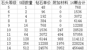 16颗14级宝石价格是很贵的,需要用到3952颗的5级宝石,需要花费的钻石数量是在456448,这个数量是很恐怖的,所以宝石是最保值的,玩家可以先升级到10级,全部宝石升级到10级就差不多了。