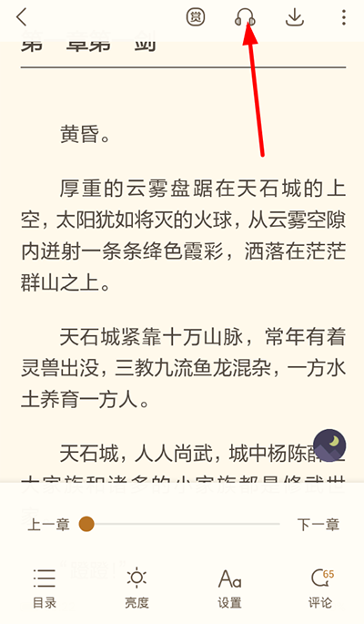 2、然后点击一下页面,在新出的界面中点击右上角的耳机图标;