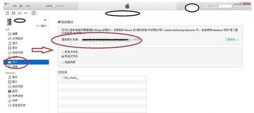 2、在设置中,点击【照片】--【同步照片】--【复制照片来源】;