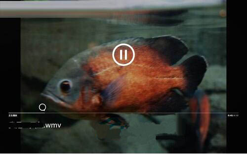 3、在播放视频界面,将鼠标移动播放界面时,可以查看播放的时间进度、播放时长、视频文件名称等,还可以在界面中间显示一个暂停按钮,可以对视频播放进行暂停操作。如图所示:
