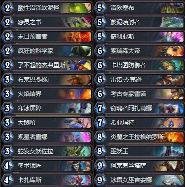 这套卡组乍一看没有解场,和大家平日里见到过的九万六千法挺像的,实际上这套卡组在处理快攻方面可以非常细腻,细腻到打快攻胜率也不低。在对阵快攻时,从2费到6费均可按费拍怪(诸如布莱恩铜须和洛欧塞布等随从可看成具有异能的合格身材随从),且3费的布莱恩铜须如若解不了接上了不起的杰弗里斯和卡扎库斯将会让对面直接崩盘。而返场的关键点在于新卡考古专家雷诺和了不起的杰弗里斯,在成功返场后便可掌握局势,配合优质橙卡大杀四方。这套卡组在面对同为宇宙卡组的同僚时,只输过一把宇宙法,这套卡组都是随从,往往对手并不会有意识的规划aoe的使用(诸如场面上只有一个大帝的时候交圣光炸弹),这时候大概率会被每回合都有威胁的生物平推死。这套卡组在面对大哥牧时同样有着相当可观的胜率,遇到的3把中之输了1把。现如今大哥牧的巴内斯被削弱,天胡的概率小了不少,通过合理的见招拆招加上进攻的大局观还是能和大哥牧针锋相对。