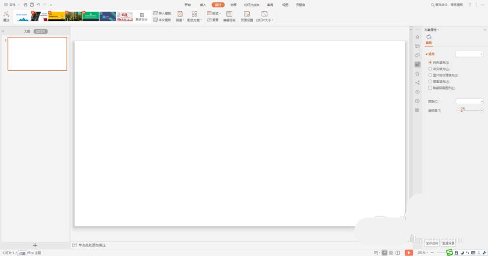 1、启动WPS2019,新建幻灯片一张,删除文本框,设置为白色背景。