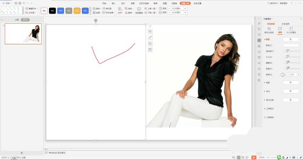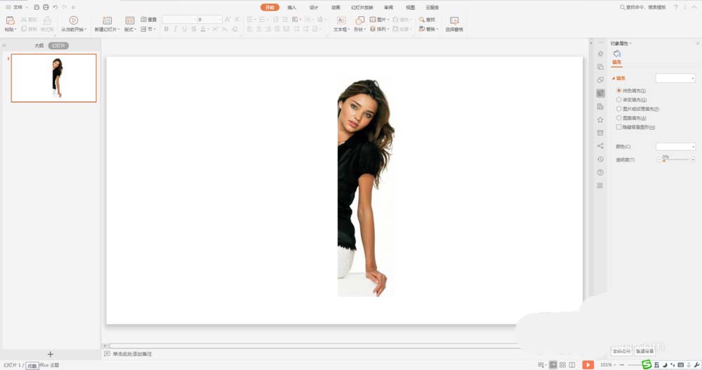 2、插入一张人物素材图片,然后插入一个与幻灯片等高、宽度约为幻灯片二分之一的矩形。