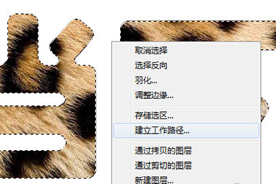 4、我们按住CTRL键,并用鼠标左键点击文字,出现文字轮廓。然后中,点击建立蒙板,一个带有毛发的文本就出来了,但是效果非常的而不真实,紧接着我们就要进行修饰。