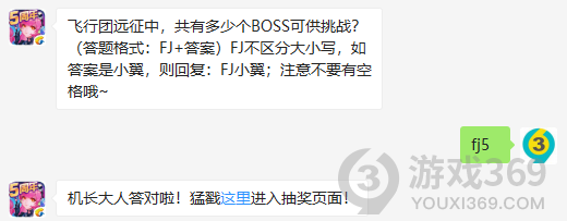 飞行团远征中,共有多少个BOSS可供挑战?答题格式:FJ+答案,10月27日全民飞机大战每日一题的答案是什么?不知道的机长们,进来看看正确答案吧!回答正确即可领取小师妹为大家准备的丰厚奖励了