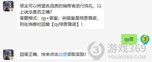 领主可以将蓝色品质的指挥官进行洗礼,这说法是否正确?答题格式:qy+答案,11月2日权力的游戏凛冬将至每日一题的答案是什么?不知道的领主们,进来看看正确答案吧!回答正确即可领取小蓝为大家准备的丰厚奖励了