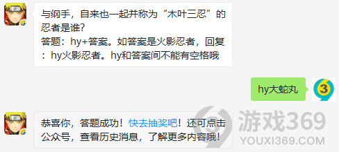 与纲手,自来也一起并称为木叶三忍的忍者是谁?答题:hy+答案,11月2日火影忍者手游每日一题的答案是什么?不知道的学员们,进来看看正确答案吧!回答正确即可领取豚豚为大家准备的丰厚奖励了