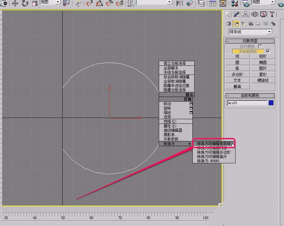 在曲线上面单击鼠标右键,选择“转换为可编辑样条线”命令。