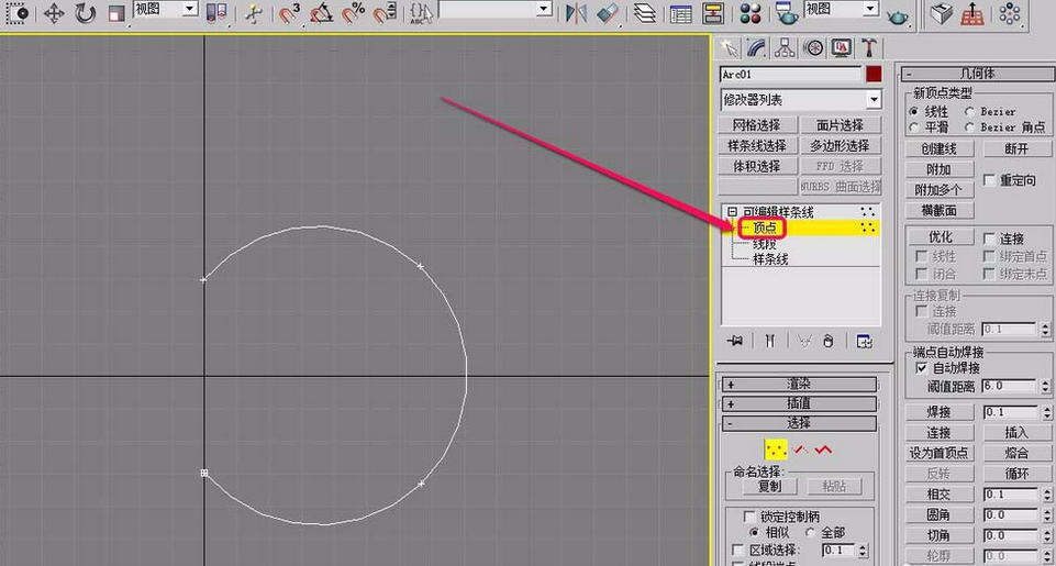 选择“可编辑样条线”修改器中的“顶点”选项。