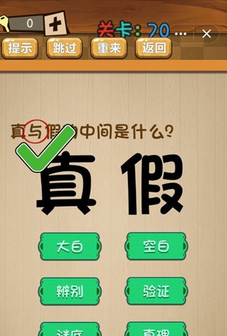 真与假的中间是什么?很多玩家看到这个题目的时候一脸茫然,根本不知道该如何去记性解答,不过没有关系,小编带来了神脑洞的第70关攻略,来看看吧。