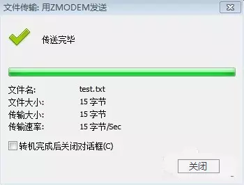 文件上传成功。选择文件上传后。会弹出如下图所示的文件传输窗口,表明文件已上传成功。