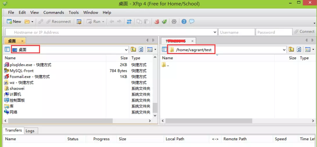 在打开的Xftp页面上,我们可以看到,这时是自动连接上了刚刚在Xshell连接的服务器。若是直接打开Xftp的话,需手动连接服务器的,,从Xshell关联过来,就方便很多了。