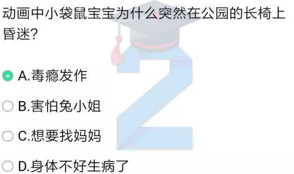1、动画片中小袋鼠宝宝为什么突然在公园长椅上昏迷?