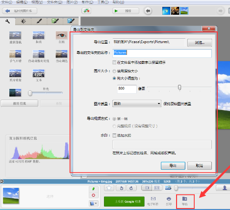 最后选择该图片的保存位置等,选择完毕后点击“导出”即可。