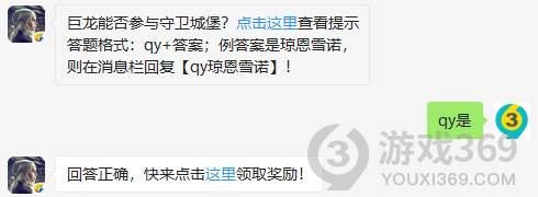 巨龙能否参与守卫城堡?答题格式:qy+答案,11月25日权力的游戏凛冬将至每日一题的答案是什么?不知道的领主们,进来看看正确答案吧!回答正确即可领取小蓝为大家准备的丰厚奖励了