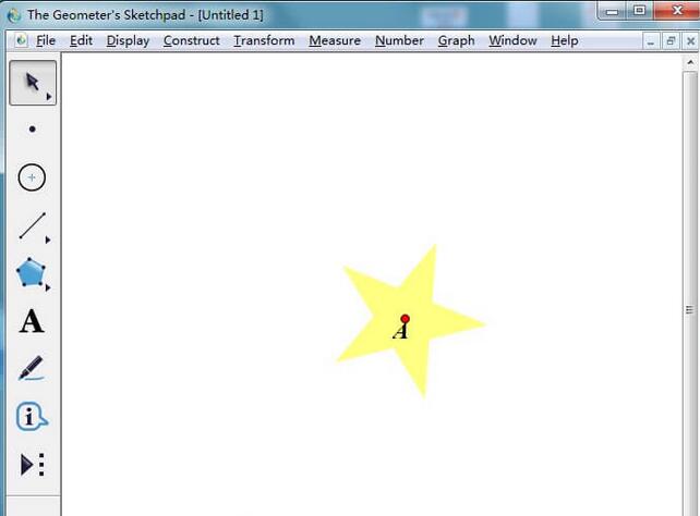 5.用“选择”工具单击五条线段的交点处,定义交点。接着用“选择”工具依次选取点,单击菜单栏“构造”——“多边形内部”,填充出一个黄色的五角星。