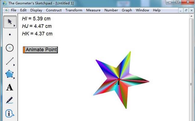 9.选取点H和线段AH,单击菜单栏“构造”——“轨迹”,可以看到彩色线条填充和五星内部;