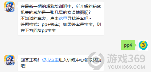 在最新一期的超跑培训班中,所介绍的秘密机关的威胁是一张几星的赛道地图呢?答题格式:pp+答案,11月28日跑跑卡丁车每日一题的答案是什么?不知道的车主宝宝们,进来看看正确答案吧!回答正确即可领取皮蛋为大家准备的丰厚奖励了