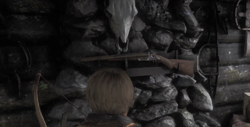 基兰告诉亚瑟有现金藏在烟囱里,搜刮木屋后到烟囱旁,可获得双管散弹枪,然后拿现金。
