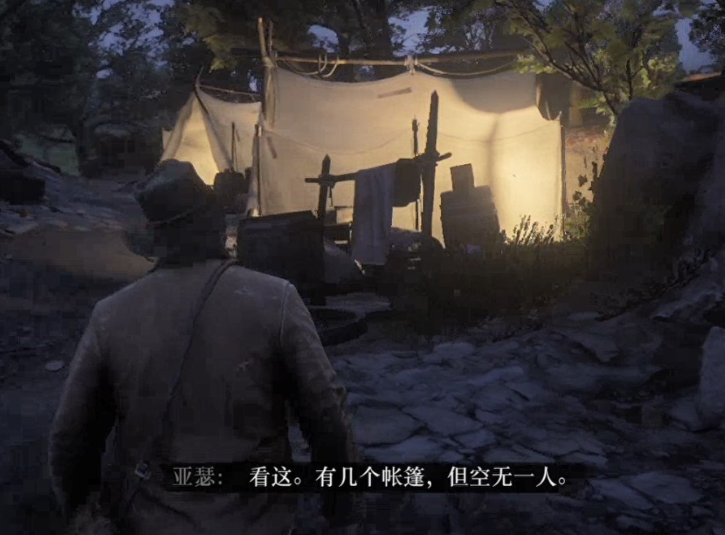来到露莓溪发现一具尸体,调查旁边的帐篷,却空无一人。