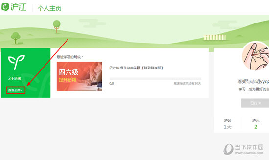 1、大家只需进入到沪江网校的个人主页,点击其中的查看全部;选项,即可查看之前所加入的班级,如下图所示:
